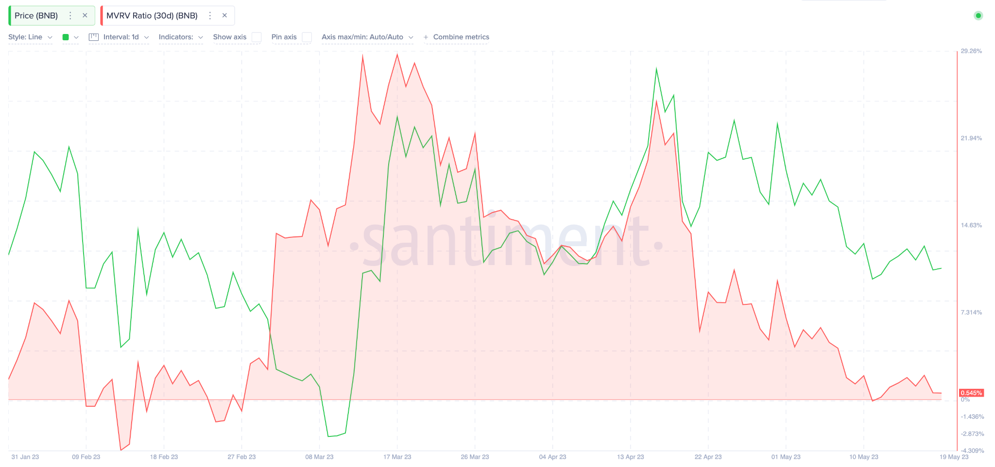 Binance (BNB) price has failed to break above the $315 resistance since dropping below the milestone on May 8. This week BNB’s price declined below $310 to stretch the May 2023 losses to 9%. On-chain data suggest investors could make negative BNB price predictions as crypto whales begin to sell.