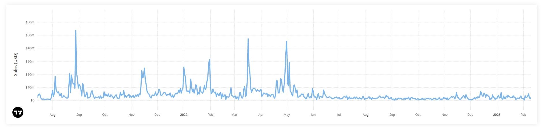 SponsoredSo far in April, BAYC generated 17,000 ETH in sales, worth around $37.4 million. Last month, the sales figure stood close to 22,500 ETH. The previous peaks by the collection were achieved in August 2021, with sales of 95,477 ETH.