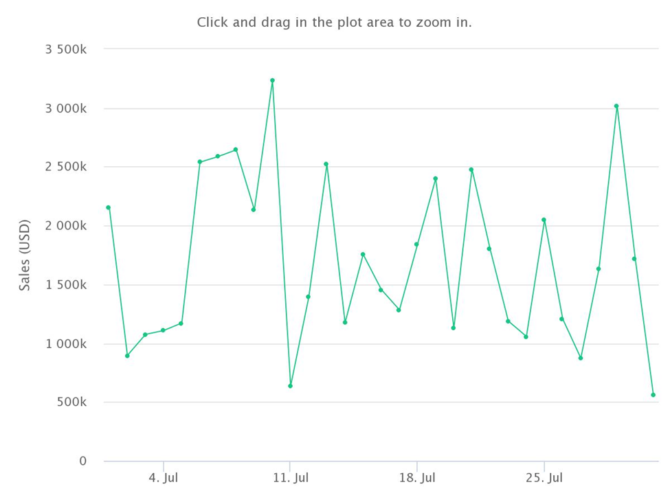 Overall, despite a plunge in sales volume, there was a 45% increase between the opening and closing price of APE in July.Â