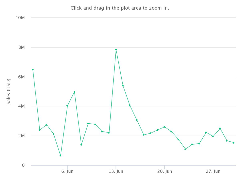 However, July’s sales were a 36% dip from June’s volume of $82 million.
