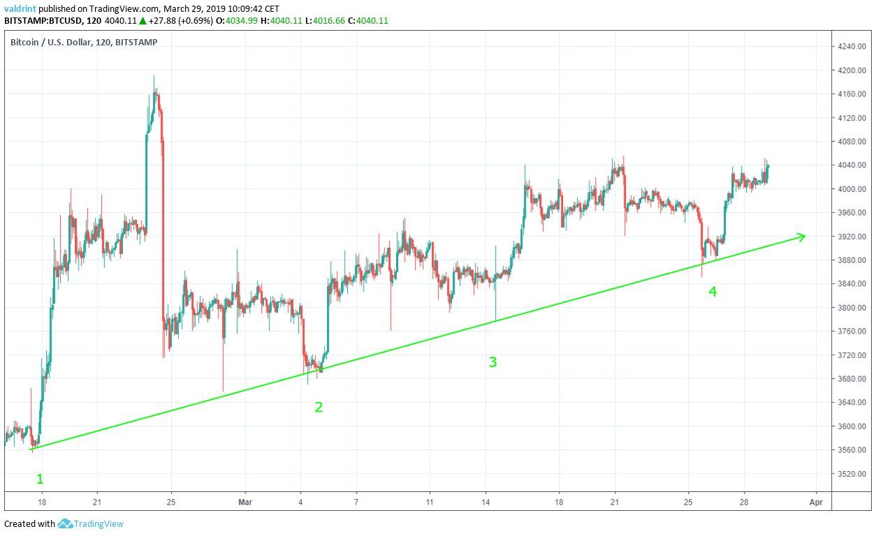 Will Bitcoin keep increasing slowly or will price drop down to $3850 lows again?