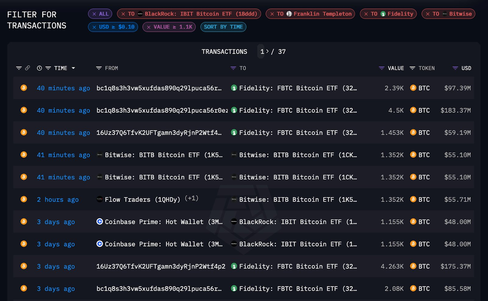 Arkham Intelligence has identified the addresses of products BlackRock, Bitwise, Fidelity, and Franklin Templeton offer.Â