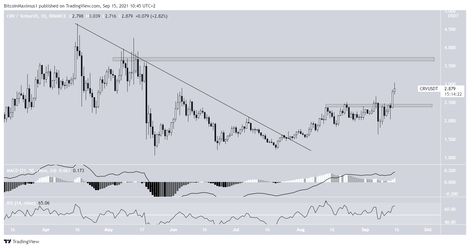 Curve DAO Token (CRV) broke out from a descending resistance line.