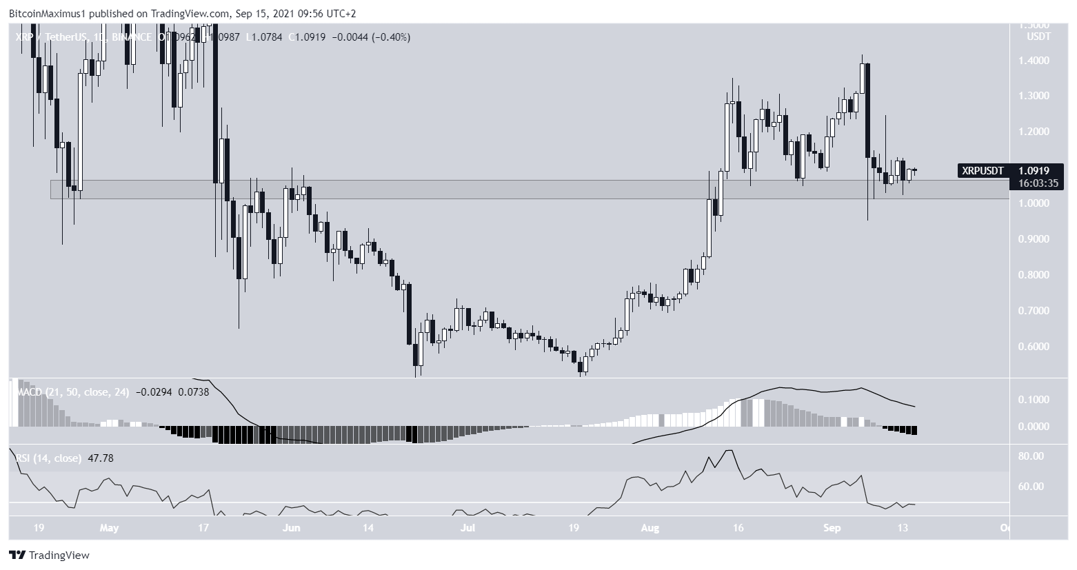 On Sept 6, XRP reached a high of $1.42 but fell sharply the next day. Since then, it has been trading just above the $1.05 horizontal support area.