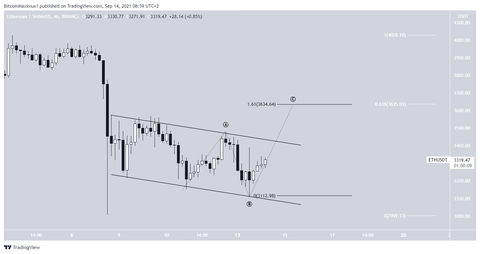 If true, ETH could increase all the way to $3,634 — the 0.618 Fib retracement resistance level (white). This would also give waves A:C a 1:1.61 ratio.