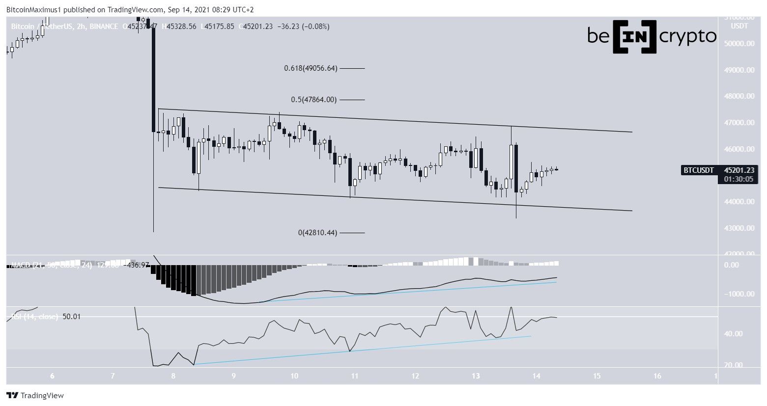 BTC has been trading inside a descending parallel channel since Sept 7. Such channels often contain corrective structures.