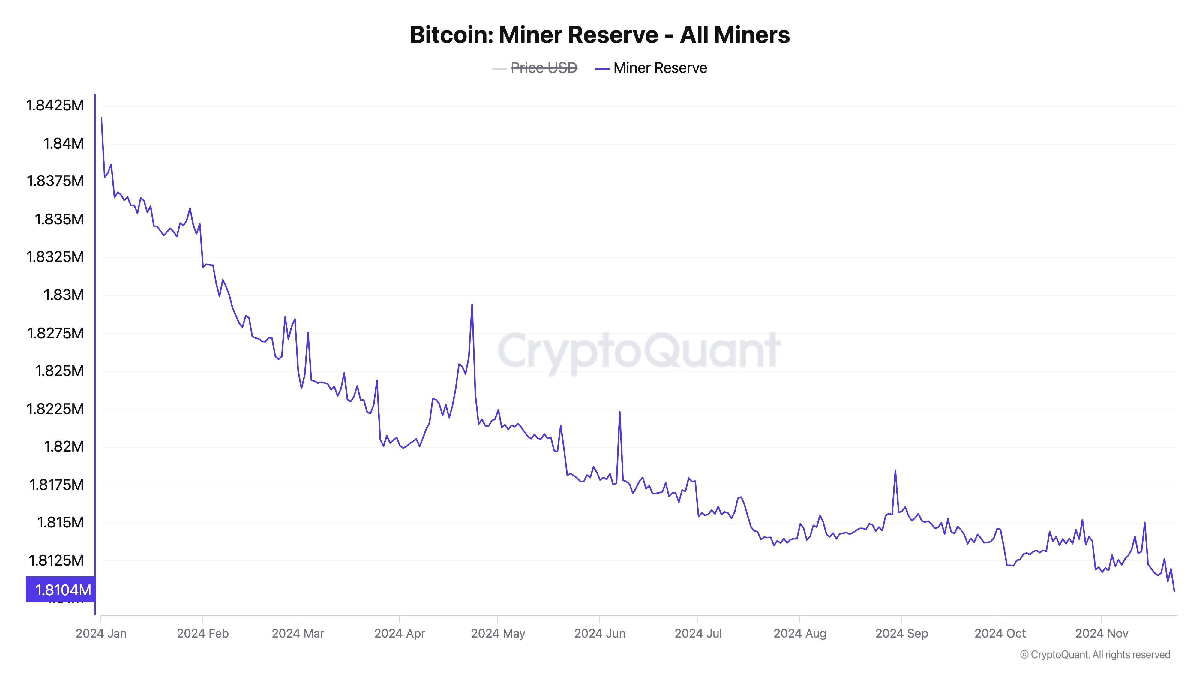 According to CryptoQuant’s data, Bitcoin’s miner reserve has fallen to its lowest level since the beginning of the year. As of this writing, it sits at 1.81 million BTC.