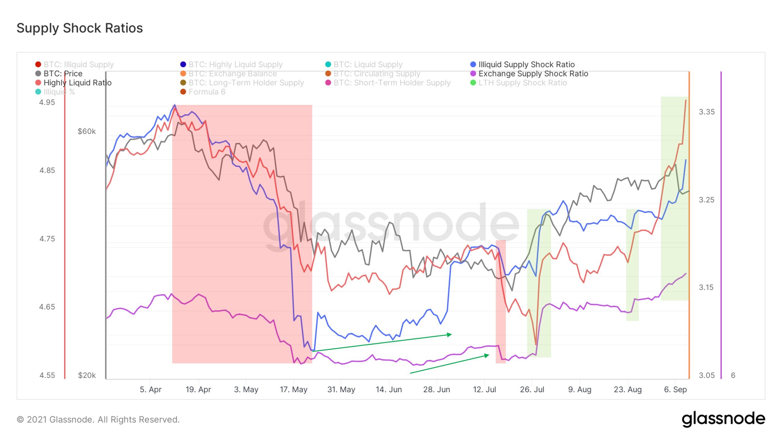 The positions of long-term Bitcoin investors have remained rock solid despite the sharp decline on 7 September. Furthermore, we continue to see a deepening supply shock as the amount of BTC on exchanges steadily decreases.