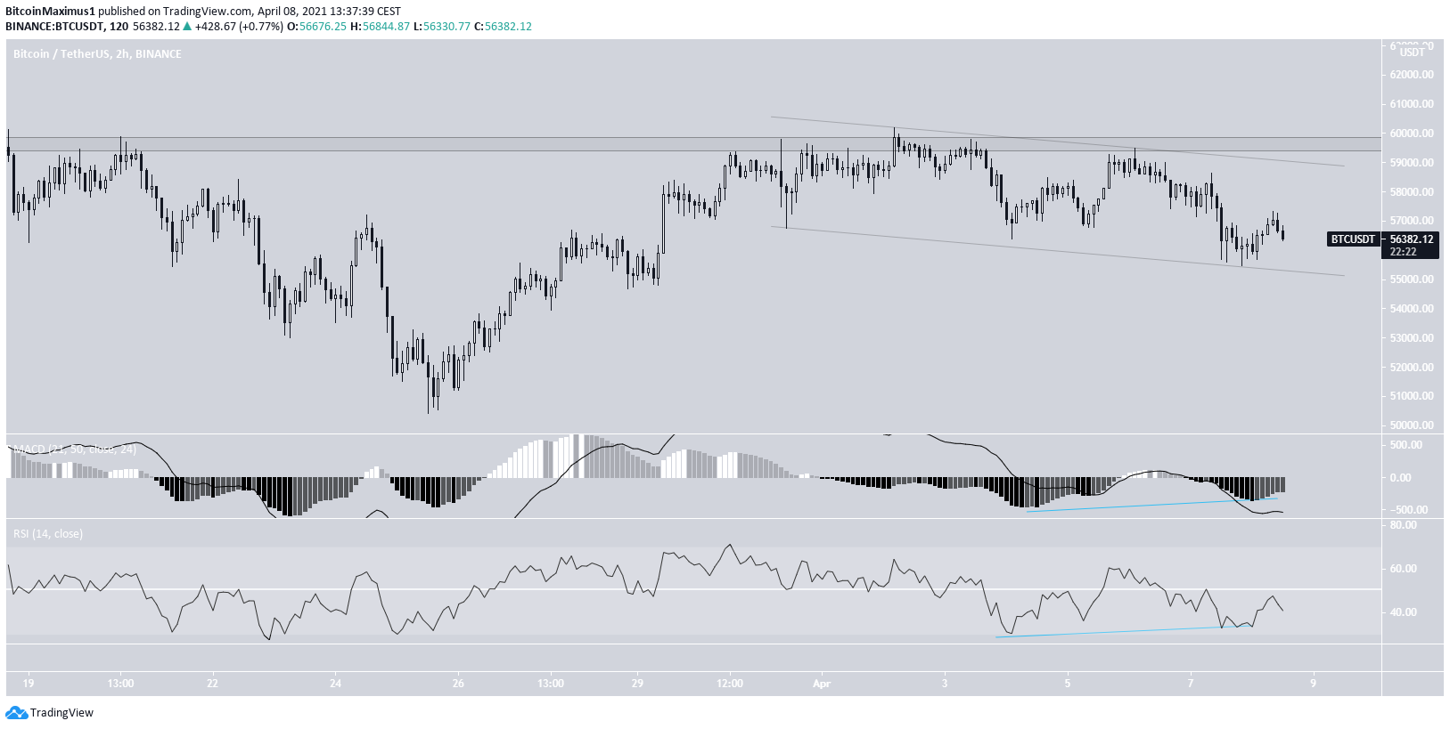 BTC has been moving downwards since April 2, when the $59,500 resistance area rejected it.