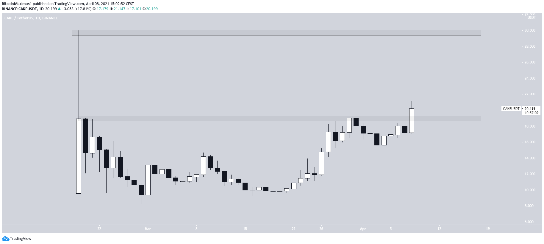 PancakeSwap (CAKE) has broken out from the $19 resistance area.
