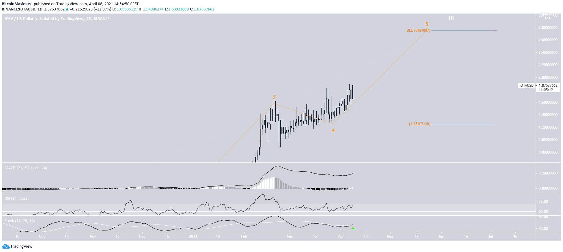 On Feb. 19, IOTA reached a high of $1.70. Since then, it has been gradually moving upwards.