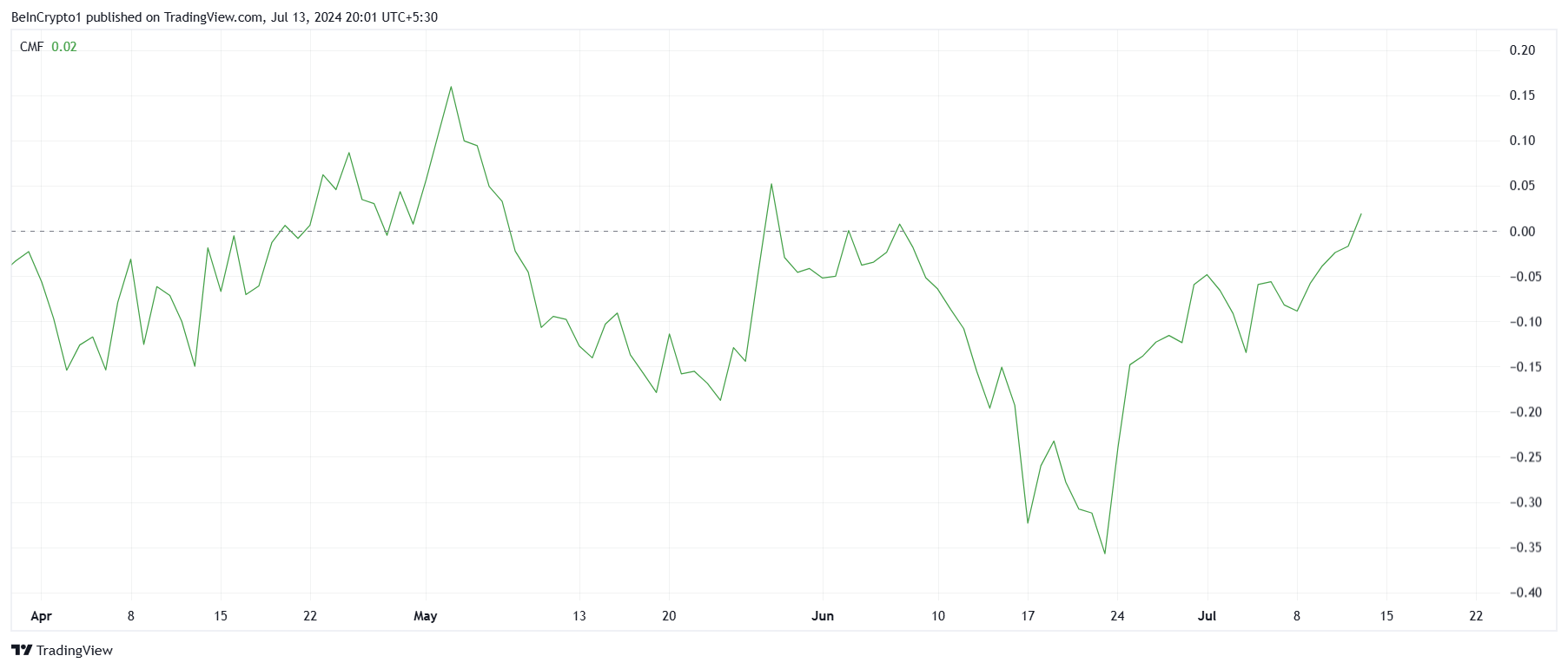 WIF price is looking at gains as the Chaikin Money Flow (CMF) is currently highlighting a notable surge in inflows. This increase in capital entering the market is generating substantial buying pressure for the meme coin. As inflows rise, it indicates growing investor interest and confidence in WIF, which could potentially drive its price higher.