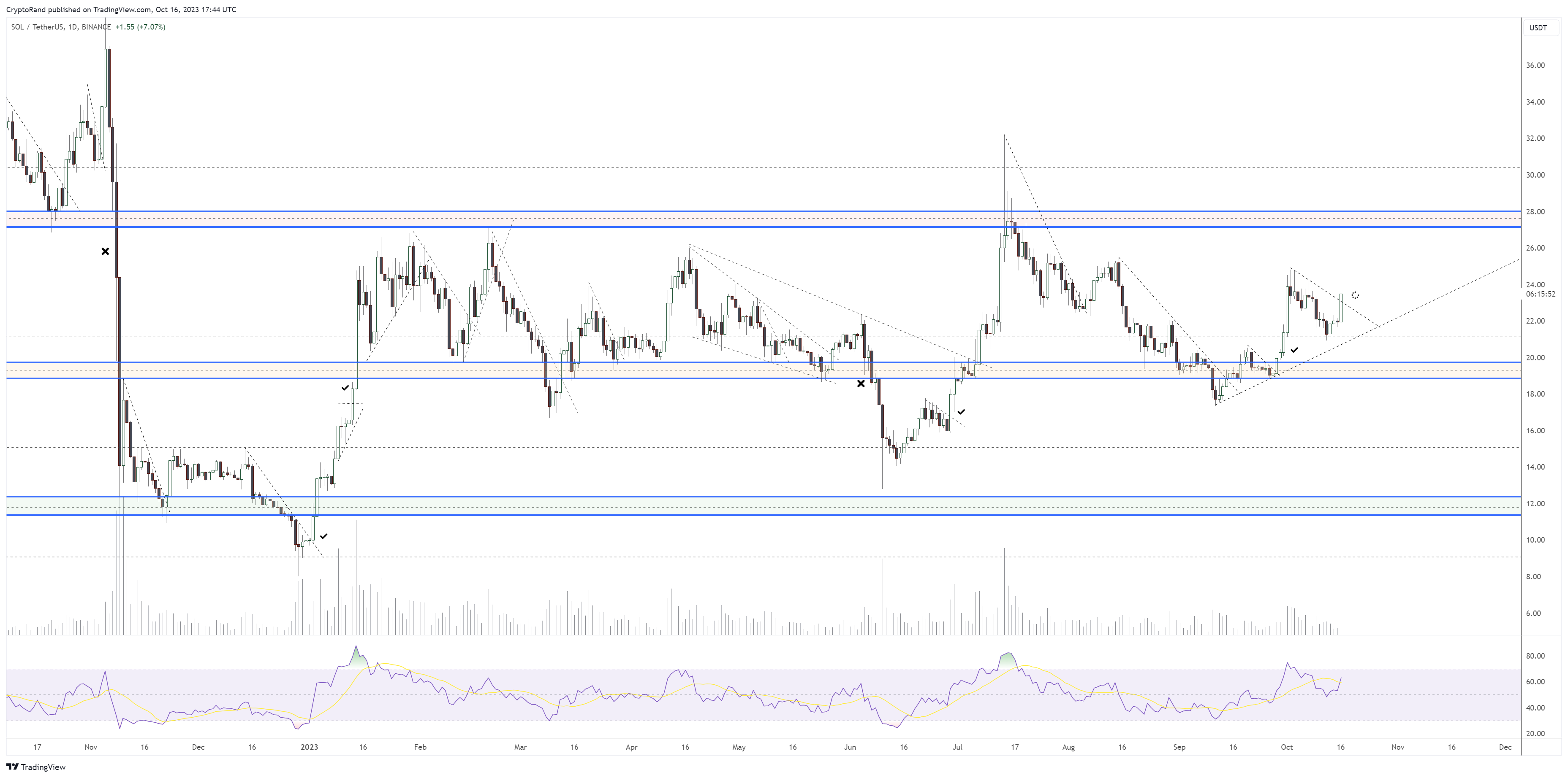 Crypto Rand also has a positive outlook for the Solana price. He has outlined several short-term breakouts from descending resistance trendlines, while ShardiB2 noted consecutive bullish daily closes.