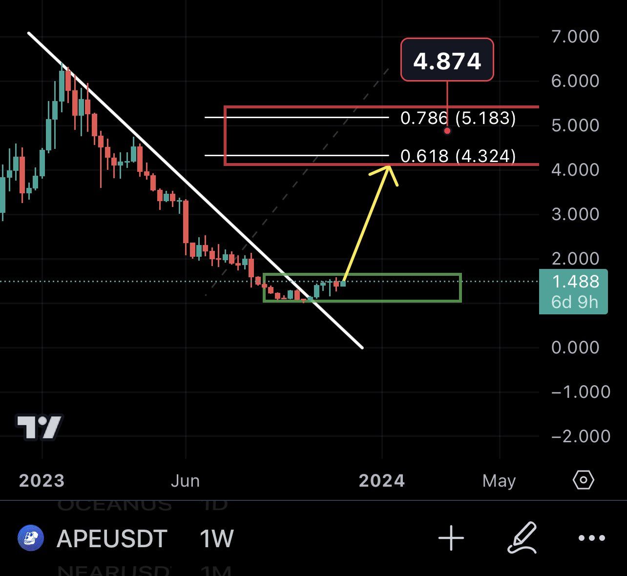 Tyrion Trades has a similarly bullish outlook for APE, suggesting that the ApeCoin price will move above $2. He uses horizontal levels to determine that the APE price will break out and accelerate its increase.