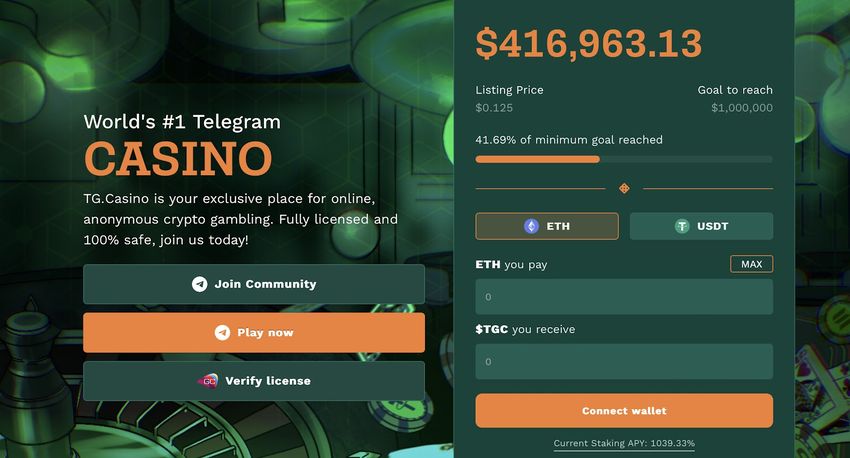 However, the TG.Casino presale has already raised over $410k in just over two weeks, reaching 41% of its minimum goal of $1 million. Interested buyers have limited opportunity to purchase the token before it potentially explodes after launch.