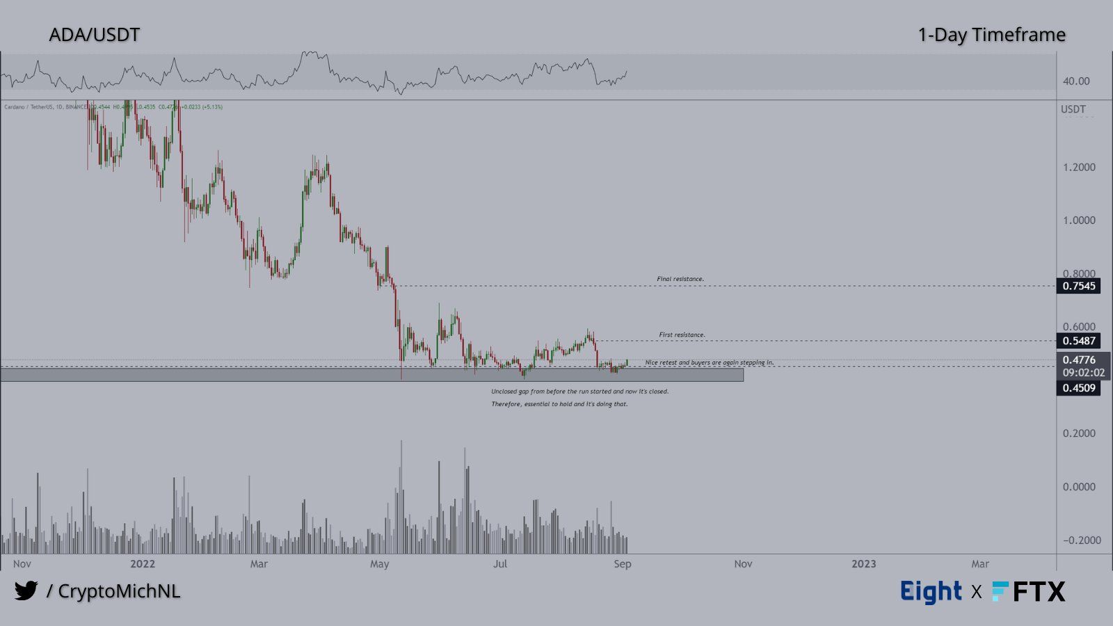 Cryptocurrency trader @CryptoMichNL tweeted a chart of ADA, stating that the price could increase towards $0.55 and $0.75, respectively.