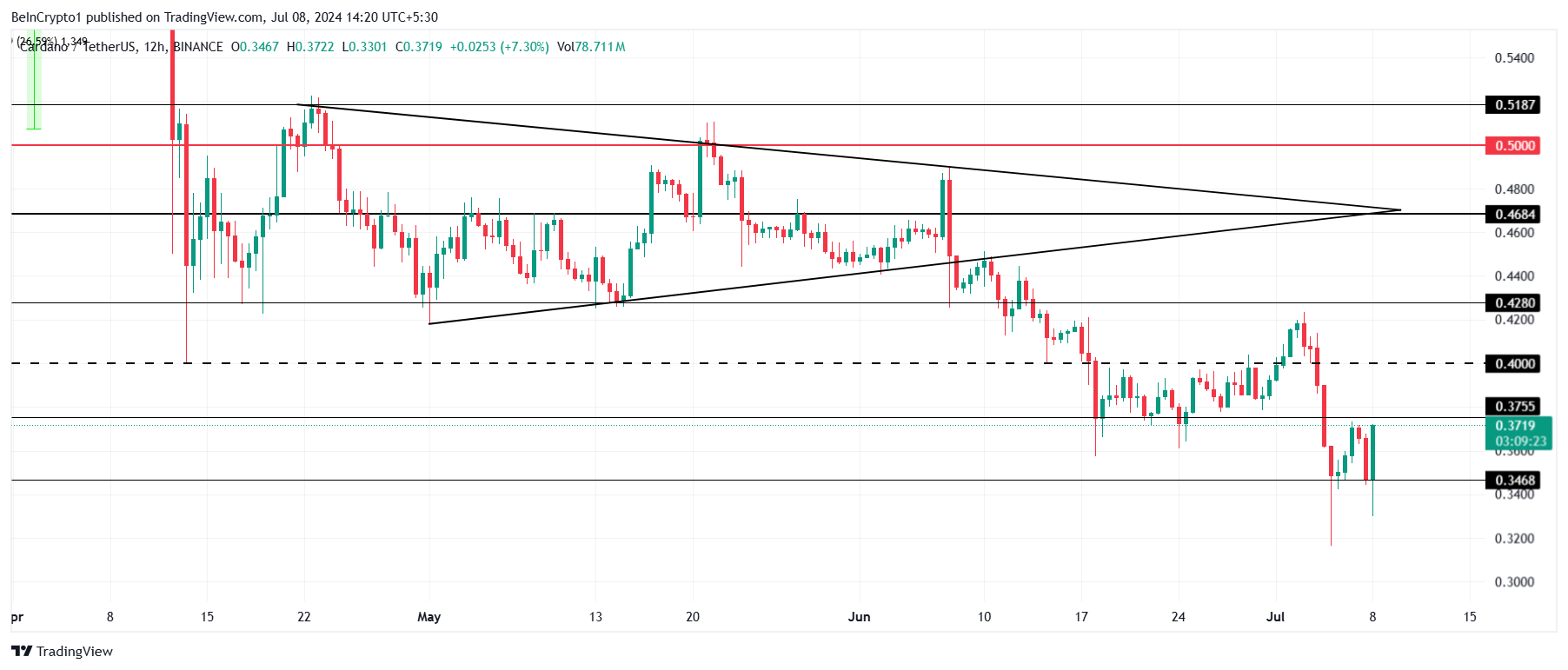 Cardano’s (ADA) price is still hovering in the sub $0.40 range, which it has reached following recent declines.Â