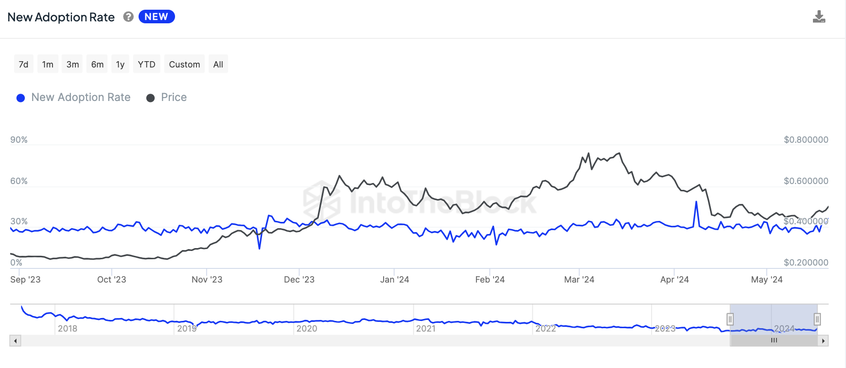 The adoption rate of ADA has been showing positive trends. Despite fluctuations in price, the consistent increase in new addresses suggests a healthy influx of new users. This is a positive sign for the long-term growth and stability of the Cardano network.