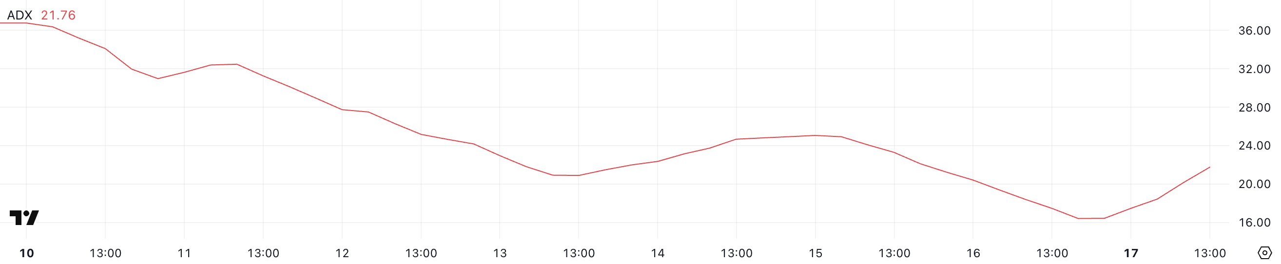 Cardano ADX has risen to 21.7 from 16.2 in just one day, signaling a strengthening trend.