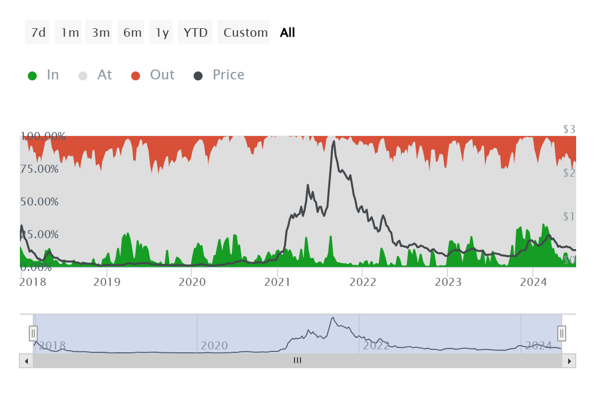 This volume has dropped from $17.2 billion to $8.4 billion in the span of a quarter, with the volume noting further decline. Whales hold substantial influence over the price, and their activeness tends to help accelerate recoveries. However, in the case of Cardano, this responsibility will likely go to the retail investors who are patiently HODLing over-selling.