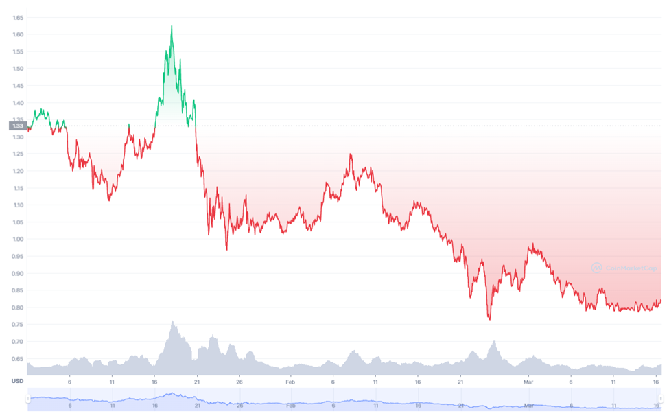 Unfortunately, the boom in total value locked has not reflected positively in the price of Cardano’s novel token, ADA. The crypto trading asset opened on Jan. 1, 2022, with a trading price of $1.31 and spiked by 24% to a yearly high of $1.63 on Jan. 18.