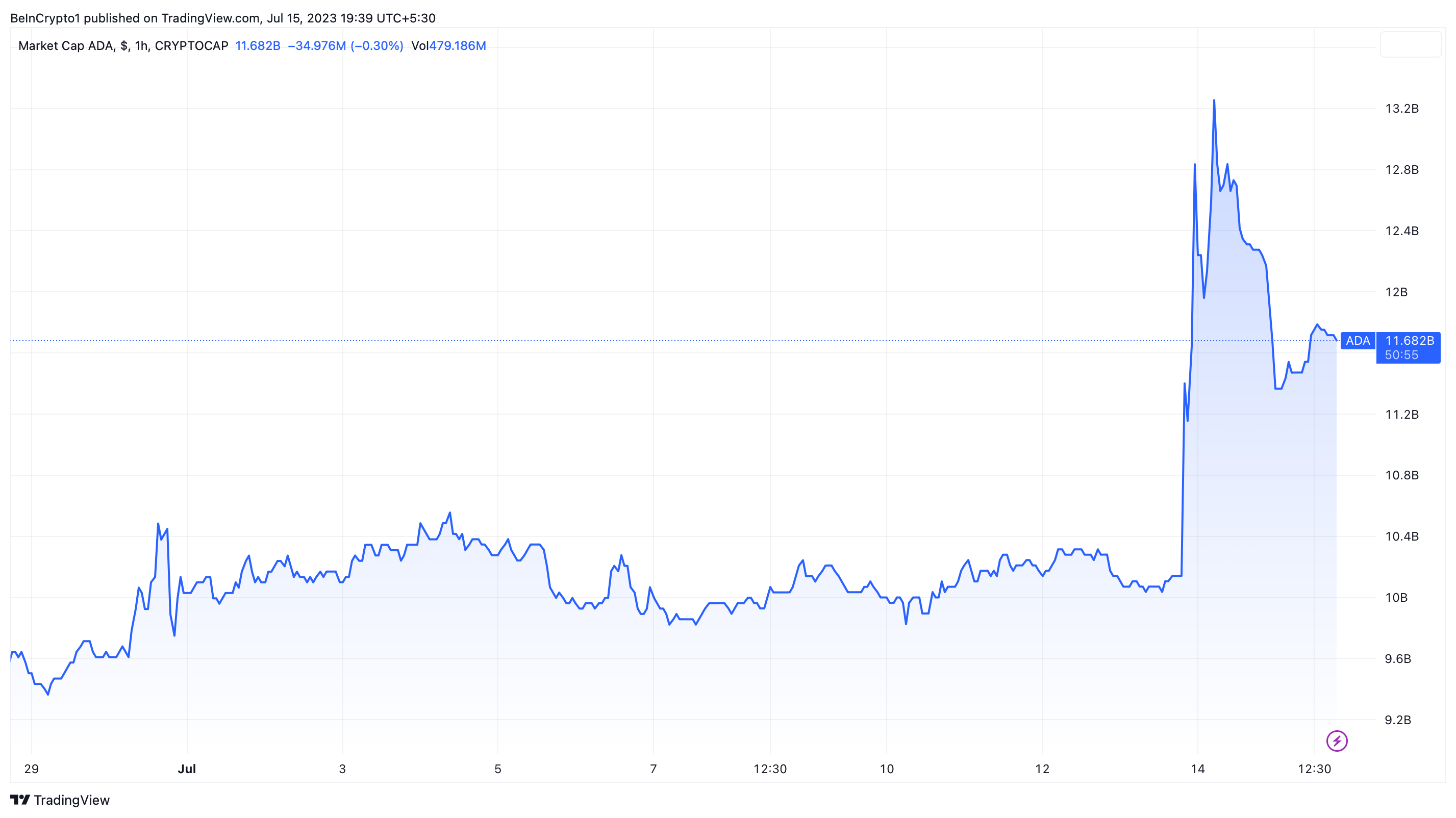 The market cap for Cardano’s ADA has also seen significant growth, rising to nearly $13 billion on July 14.