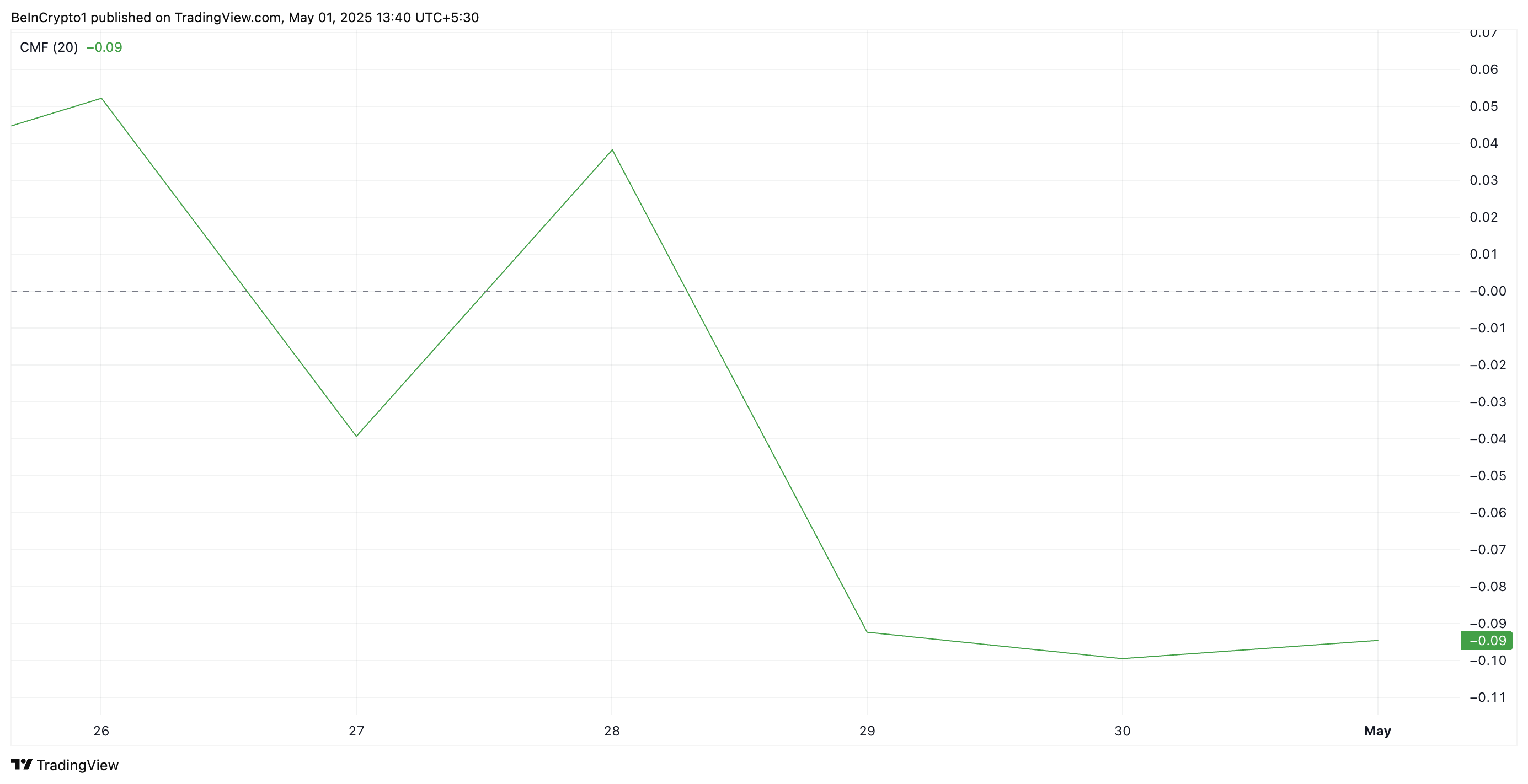 Furthermore, ADA’s Chaikin Money Flow (CMF) is negative and has remained below the zero line since Monday. At press time, this momentum indicator, which measures money flow into and out of an asset, is at -0.09.