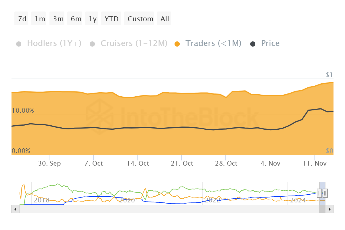 In the past two weeks, short-term investors have dominated Cardano’s market activity. These holders, typically keeping assets for less than a month, are more likely to sell during volatile periods. Their share of ADA holdings has risen from 14% to 18%, suggesting selling pressure may emerge soon. This increase in short-term activity could challenge ADA’s ability to sustain its current levels, especially if profit-taking gains momentum.
