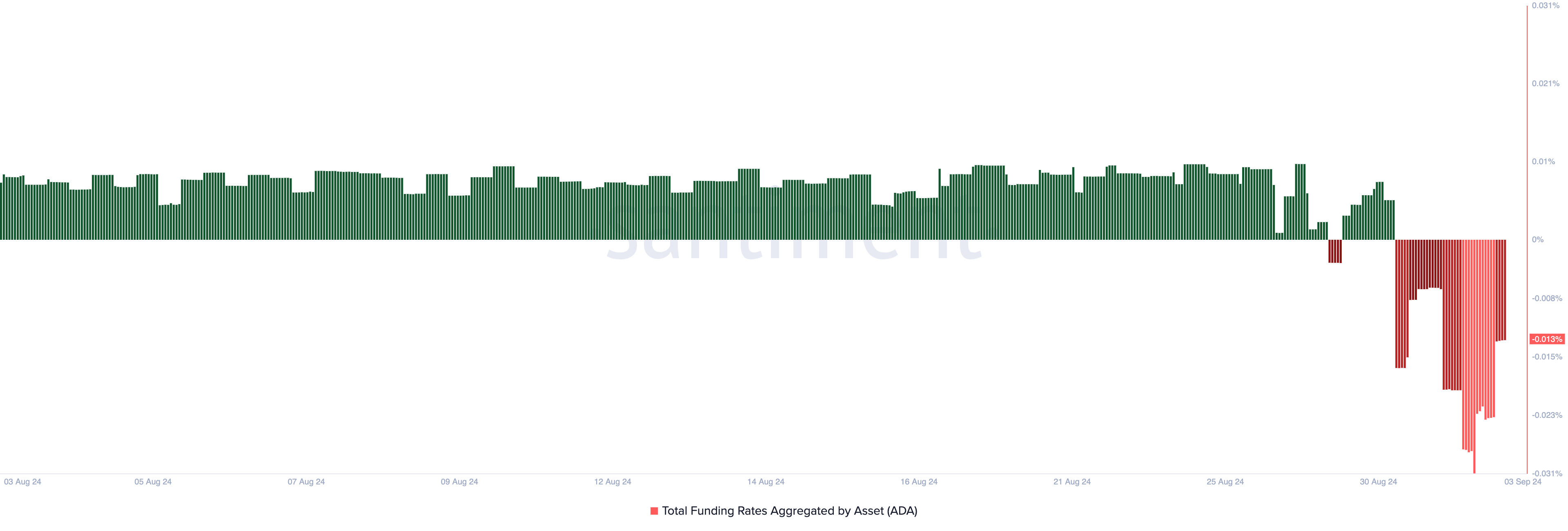 Although the decline in ADA’s open interest began on August 1, futures traders initially maintained a bullish outlook, continuing to demand long positions. This was reflected in ADA’s positive funding rate between August 1 and 30.