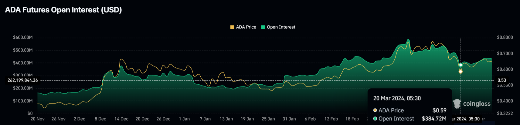 Cardano price action is barely impacting the investors as their optimism is dominating the broader market’s bearish cues. This is evident from the flow of money into the asset within the derivatives market.