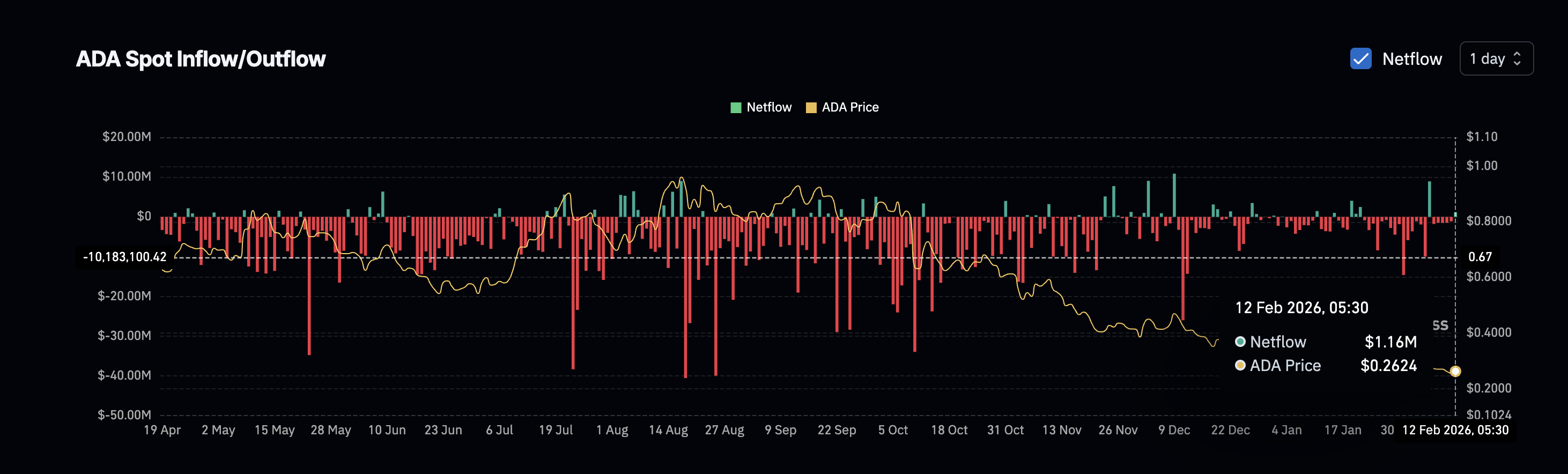 Sponsored SponsoredBut on February 12 (post the divergence flashing on the chart), netflow turned positive again, with inflows near $1.16 million. That means traders have started moving ADA back onto exchanges to sell. This shift is important.