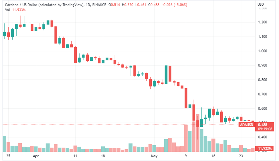 Cardano total value locked continued to decline in the last week of May due to decreased investor interest in dApps and a broad crypto market correction.