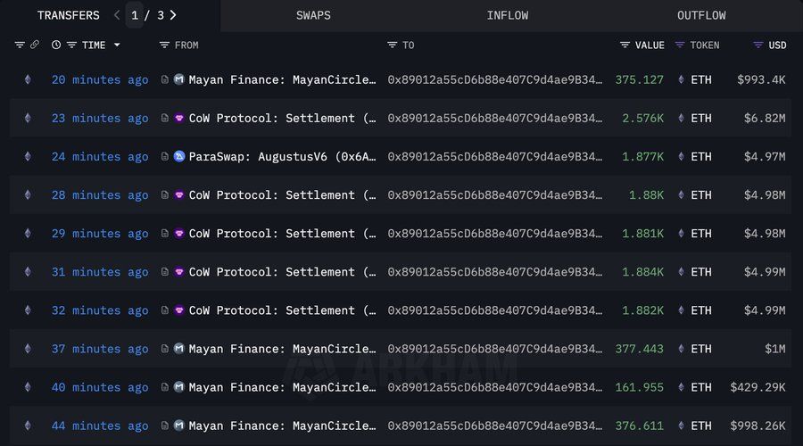 Cetus Hacker Spends USDC to Buy ETH. Source: LookOnChain on X
