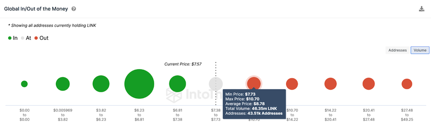 From an on-chain standpoint, Chainlink is in a prime position to reclaim the $10 mark in the coming weeks. The Global In/Out of Money Around Price (GIOM) data, which depicts the entry price distribution of current Chainlink investors, also adds credence to this prediction.
