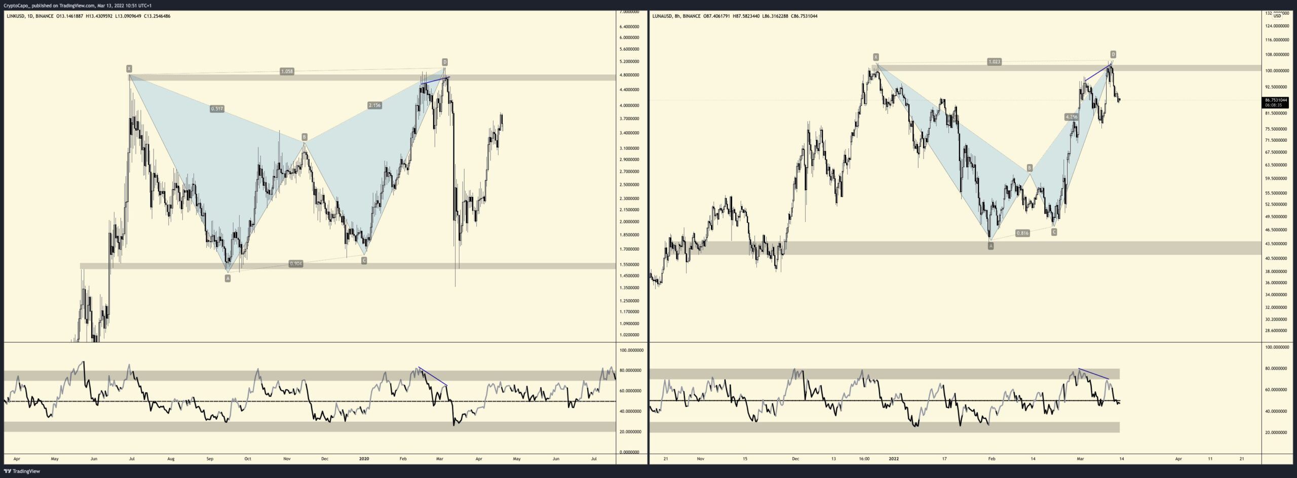 Cryptocurrency trader @CryptoCapo_ tweeted a chart of LINK which shows the bearish pattern prior to the current drop.