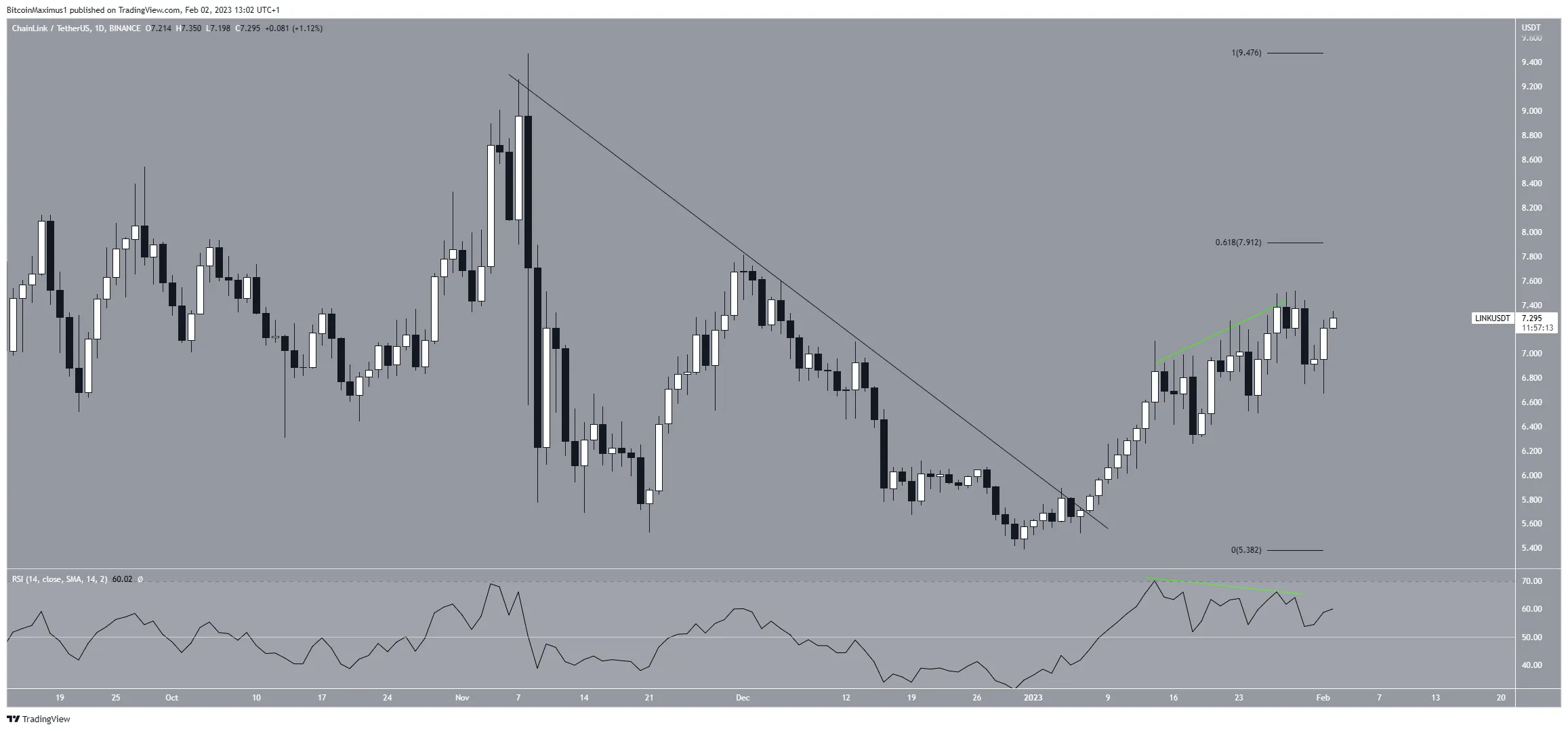 The technical analysis from the daily chart shows that the Chainlink price broke out from a descending resistance line at the beginning of Jan. Afterward, it reached a high of $7.52 on Jan. 29.