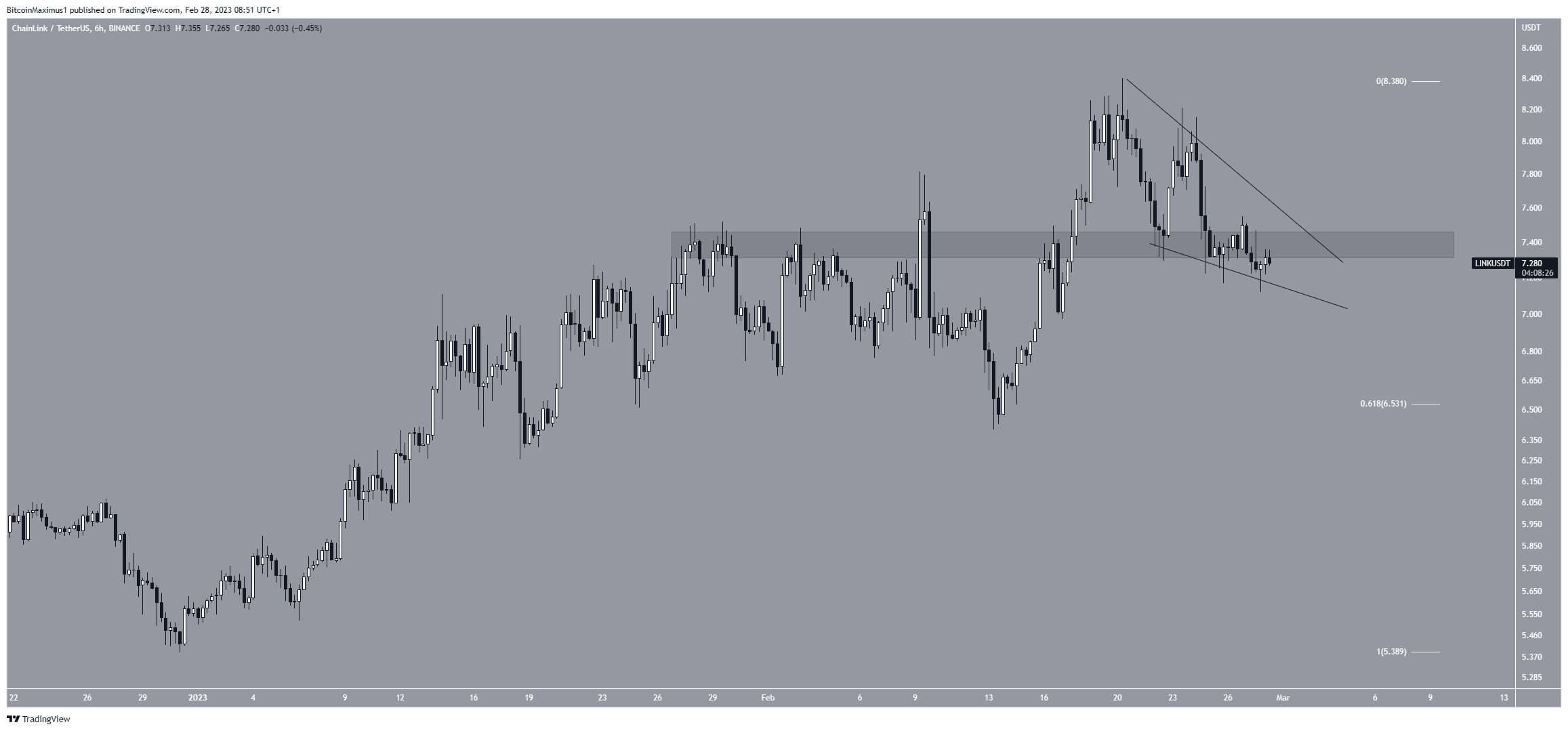 Secondly, the price trades in a descending wedge, which is considered a bullish pattern. If the LINK price breaks out from it, it will also reclaim the $7.40 resistance area. This could occur in the next 24 hours.