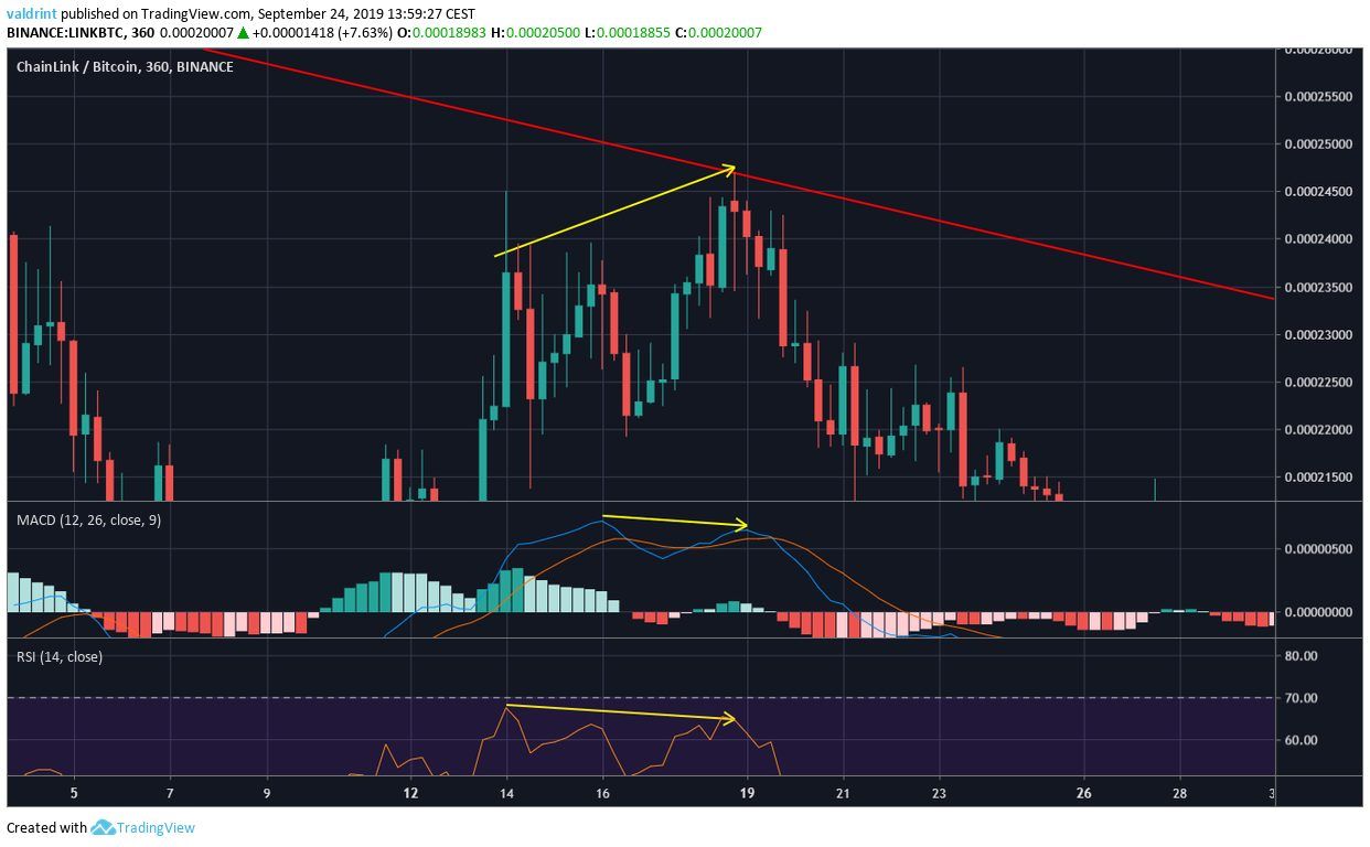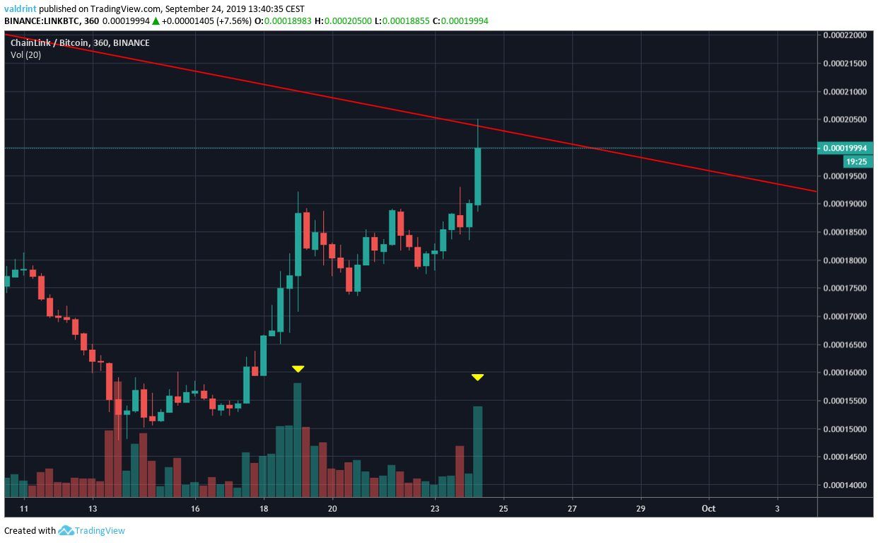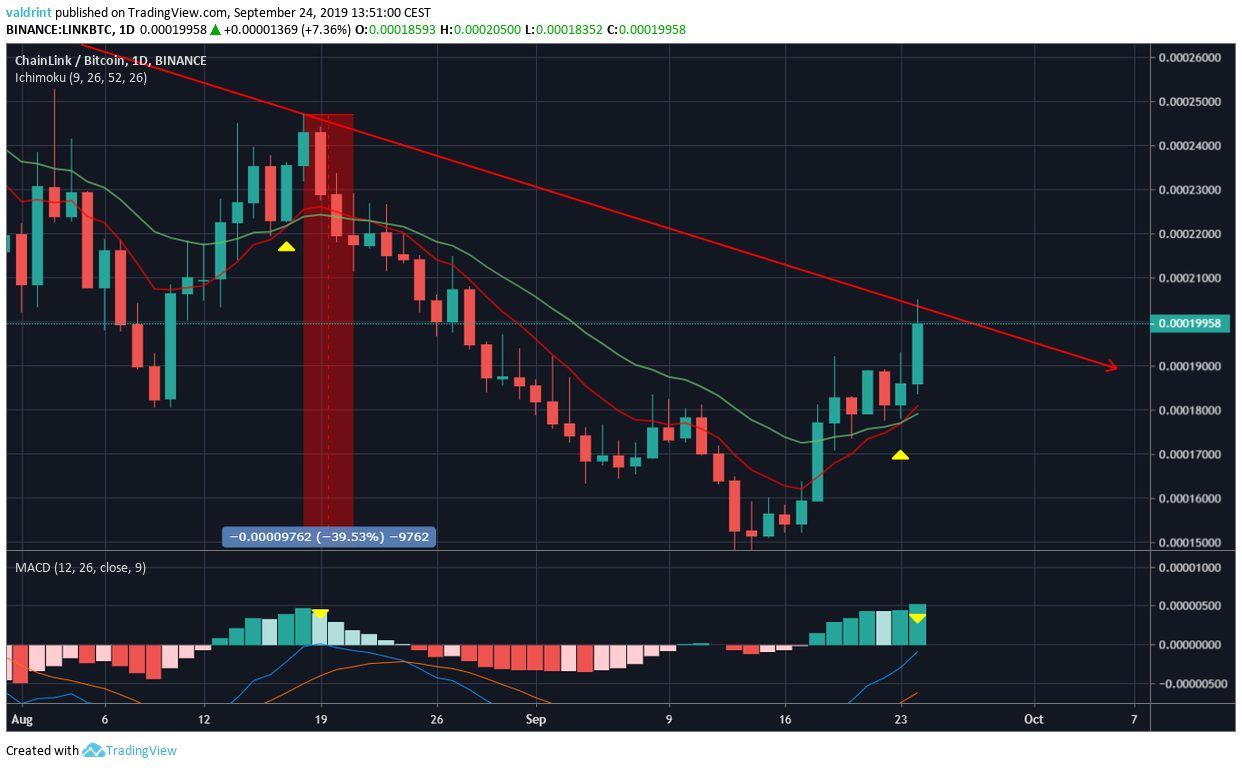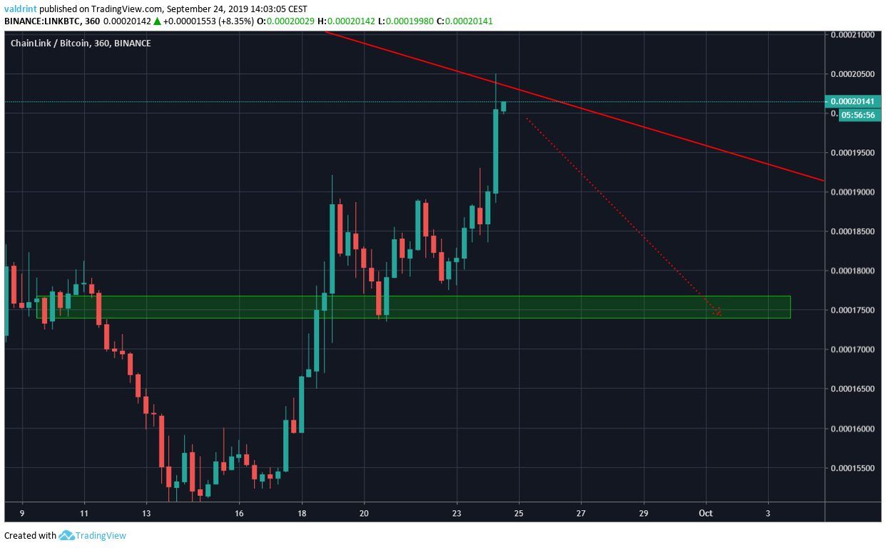 On September 17, the Chainlink price reached a low of 15,221 satoshis. An upward move followed and the LINK price reached a high of 19,204 satoshis on September 19. After trading near this level for five days, LINK broke out on September 24.