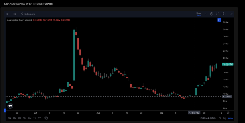 According to data compiled from CoinAlyze, Chainlink Open Interest stood at $91 million at the close of September 17. But since then, it has increased to $182 million as of September 28.