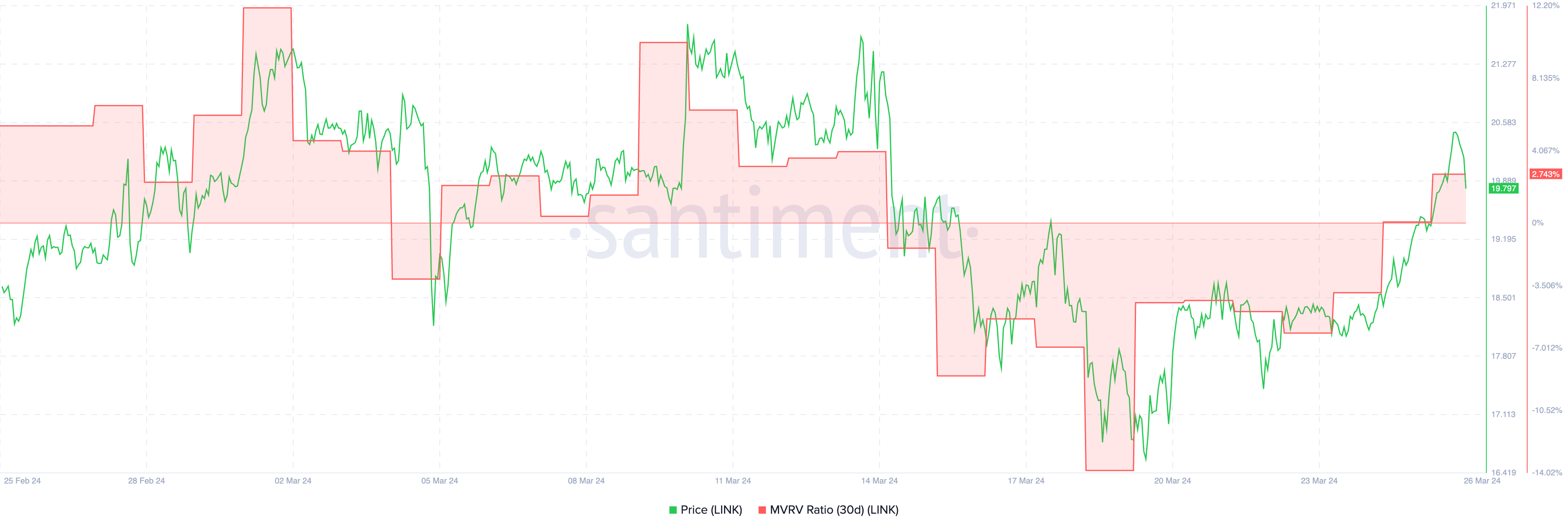 The Market Value to Realized Value (MVRV) ratio for LINK is currently hinting at bullish prospects. This ratio, which gauges the profit or loss status of investors, shows that with a 30-day MVRV sitting at 2.73%.