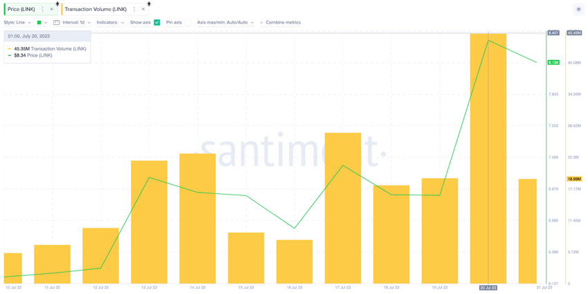 The chart below illustrates how LINK Transaction Volume rose from 5.56 million to a remarkable 45.35 million between June 10 and June 21.