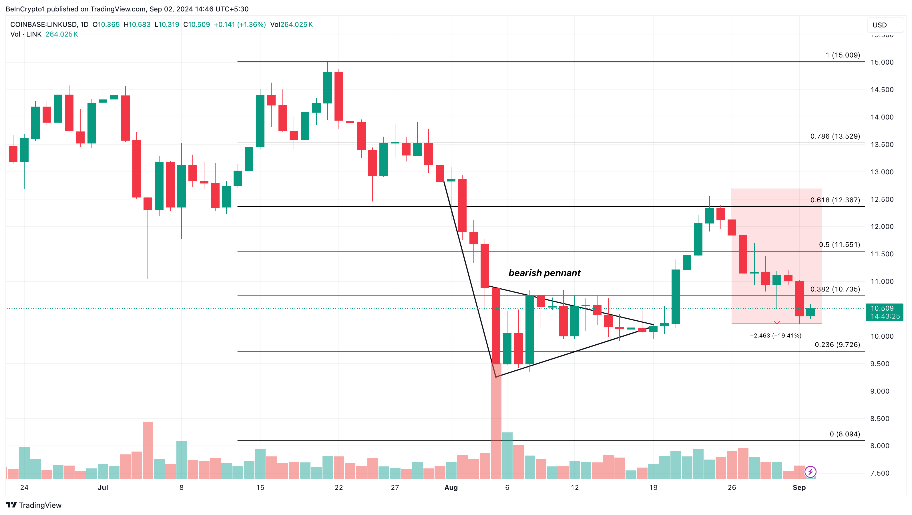 Two weeks ago, LINK broke out of a bearish pennant, a technical pattern that signals the continuation of a downtrend. Invalidating the bearish bias at that time drove LINK’s price to $12.62.