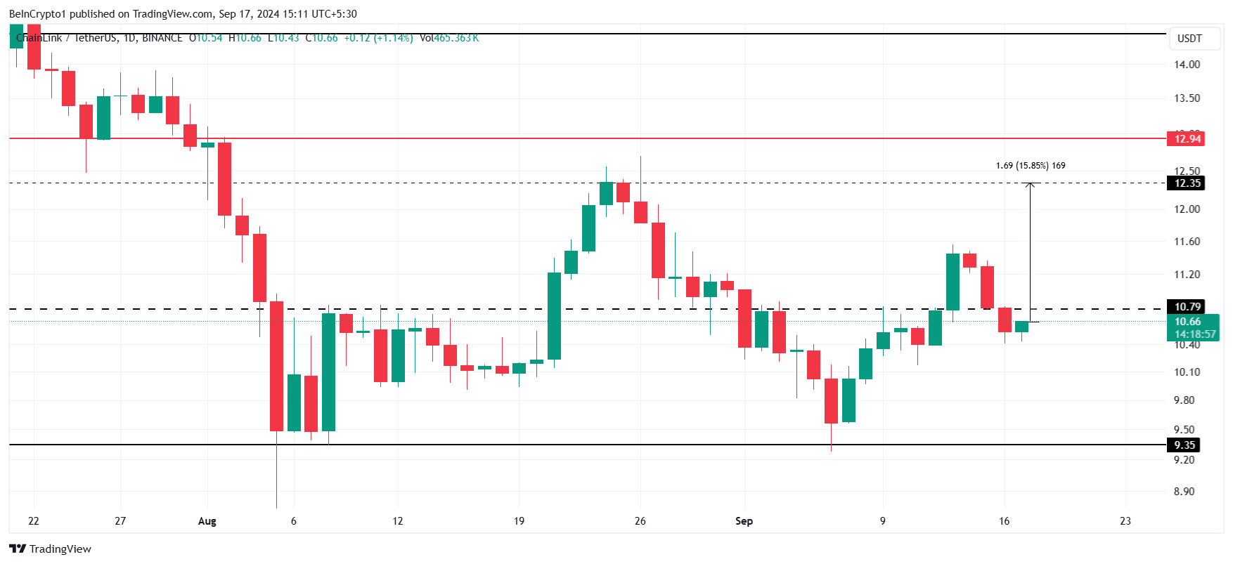 If Chainlink’s momentum continues, the price could rise to $12.94. Breaching this level would mark a six-month high for the altcoin as it targets $13.00, resulting in a 15% rise. A successful break above this point could fuel further bullish sentiment in the market.