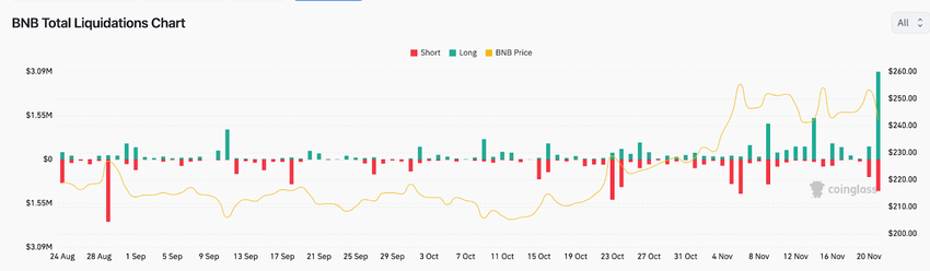 Within an hour of the report, $3 million on BNB Long positions had been liquidated, according to crypto derivatives market data tracker Coinglass.