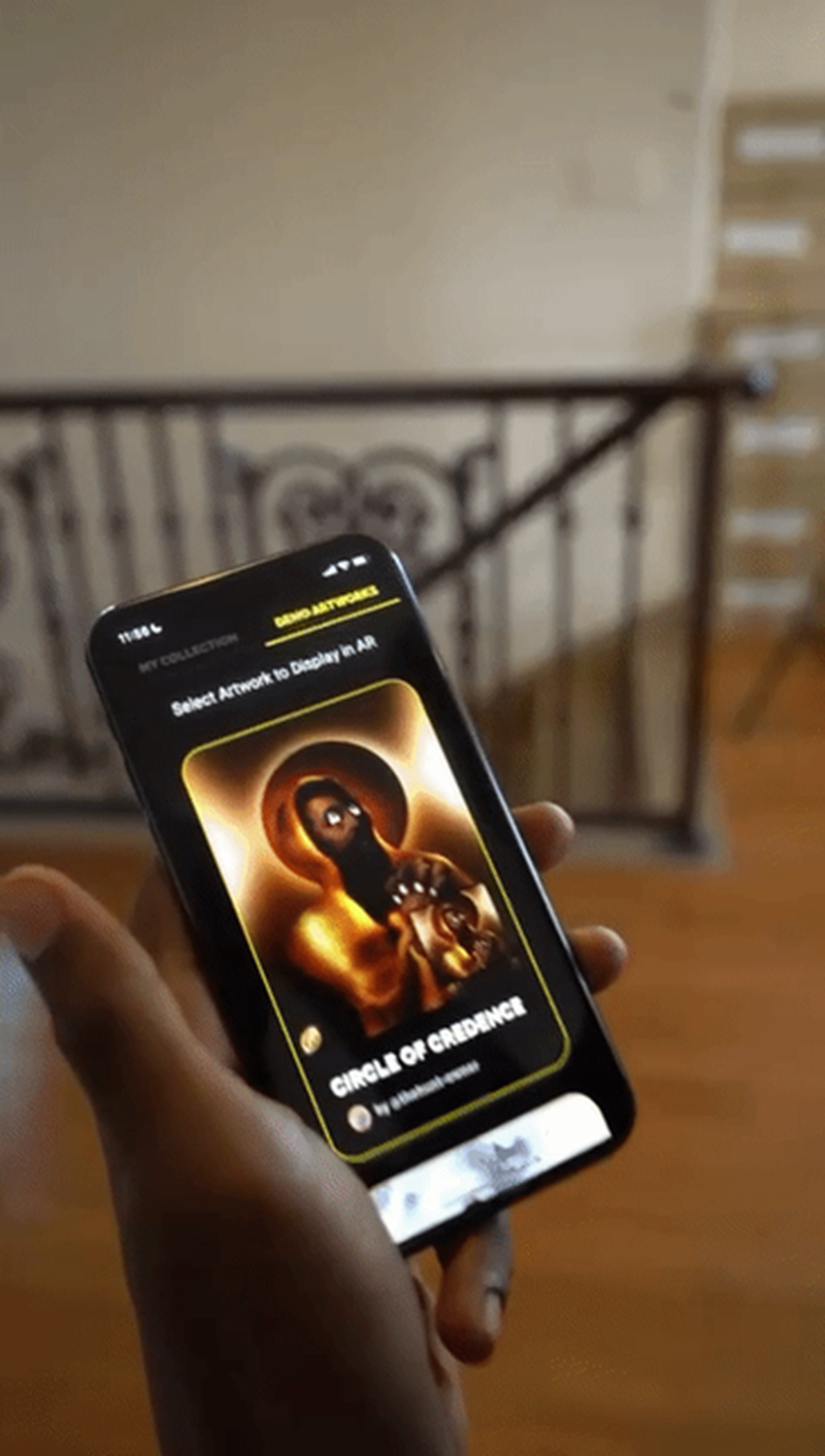 Christmas inspo: Artist Rannel Ngumuya displaying his NFT on a wall using The Hunt’s AR display app.