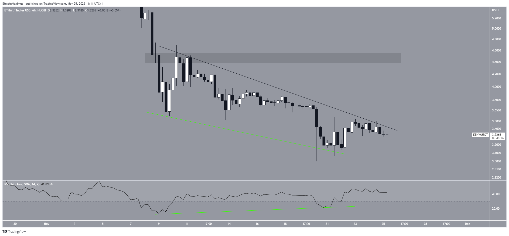 The ETHW price had fallen below a descending resistance line since Nov. 8. The downward movement led to a low of $3 on Nov. 20.