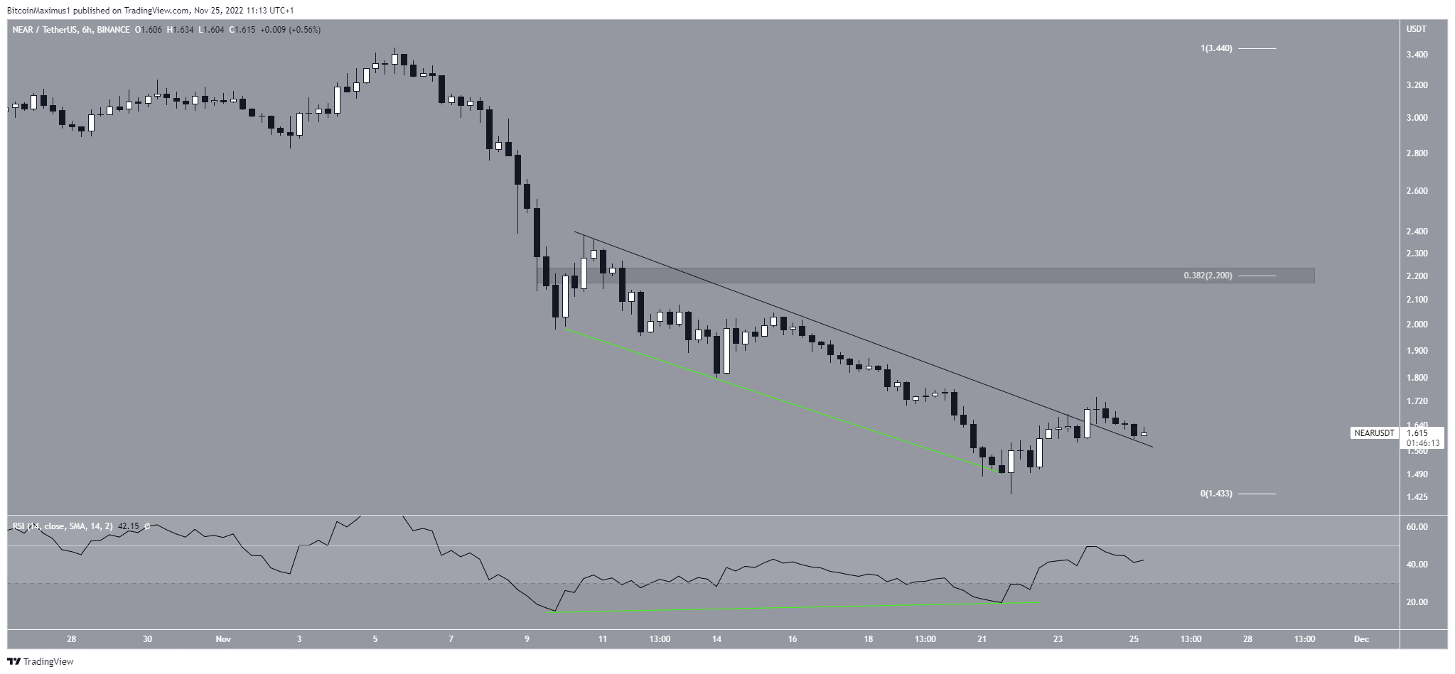 NEAR had decreased below a descending resistance line since Nov. 10. This downward movement led to a low of $1.43 on Nov. 21.