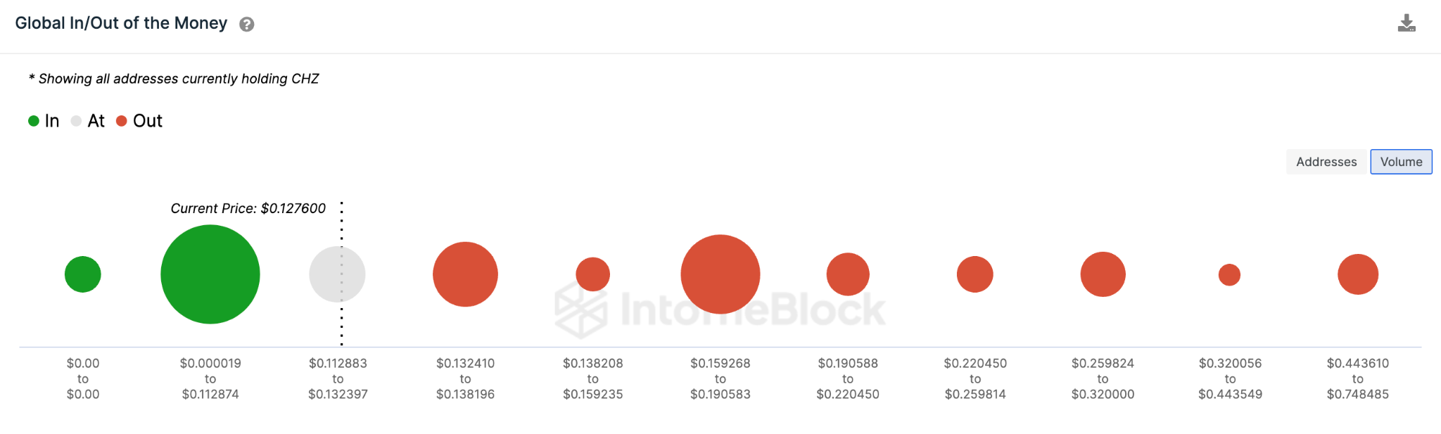 With bearish sentiment surrounding the Chiliz ecosystem, CHZ looks set to lose its current support level at $0.12. Although, IntoTheBlock’s Global In/Out of Money data shows 9,000 addresses that bought 745 million coins around that price could attempt to prevent the drop.