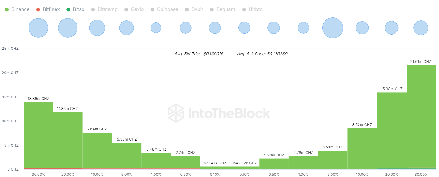 Looking at the market orders currently placed by CHZ holders across top crypto exchanges, it appears that supply critically exceeds demand. The aggregate data provided by IntoTheBlock below shows that bearish traders have offered 56 million CHZ, while there are only 45 million CHZ buy orders.