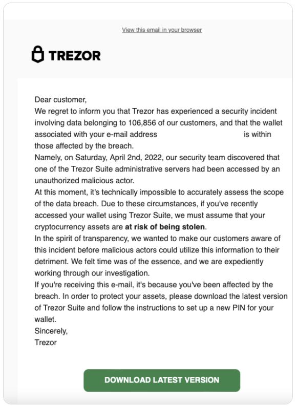 On April 4, the Mailchimp service announced a hack affecting “audience data” from over 100 clients, including crypto wallet vendor Trezor.